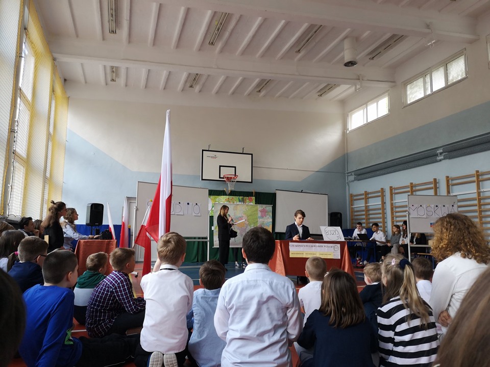 7 maja 2019 roku w naszej szkole odbyła się uroczysta Akademia z okazji 228. rocznicy uchwalenia Konstytucji 3 Maja przygotowana przez uczniów klasy 3a gimnazjum oraz 2a szkoły podstawowej. Apel z okazji Rocznicy Uchwalenia Konstytucji 3 Maja jest wpisany w coroczny kalendarz uroczystości naszej szkoły, jest on zawsze wspaniałą możliwością, by uzmysłowić wszystkim, jak ważną rolę i znaczenie mają słowa: Ojczyzna i Patriotyzm.