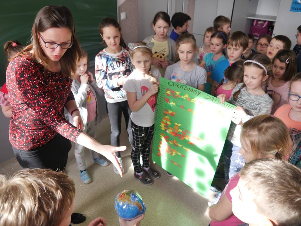 Podczas przebywania w świetlicy dzieci odrabiają zadania domowe pod okiem nauczycieli. Dzieci otrzymują za wykonane zadanie listki, które są gromadzone na specjalnej planszy. Na koniec miesiąca następuje podsumowanie, a dzieci otrzymują nagrody. W lutym najpilniej odrabiali zadanie z klasy 1a Filip Góralik oraz Kuba Habowski, natomiast z kasy 2a Emilia Biel oraz Aleksandra Sala – wszyscy otrzymali globusy. Serdecznie gratulujemy!