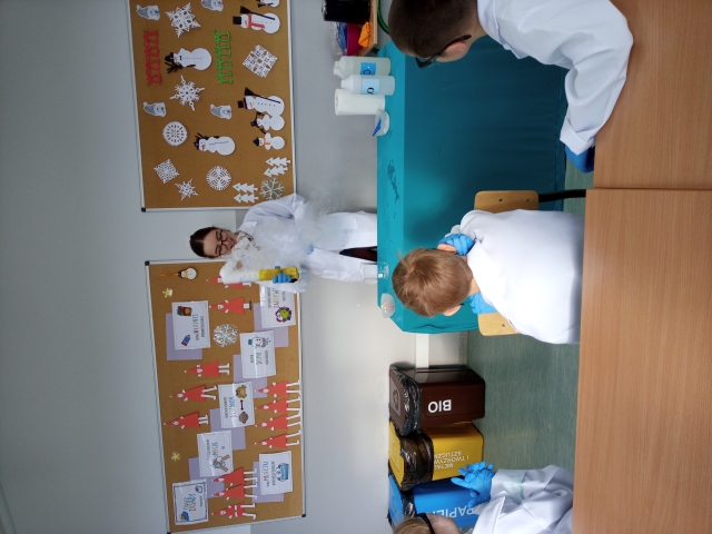 W środę 18 stycznia odbyły się w naszej szkole warsztaty chemiczne poświęcone właściwościom wody i dwutlenku węgla. Wzięli w nich udział uczniowie klas 1-3. Podczas własnoręcznie przeprowadzanych eksperymentów dzieci miały możliwość nie tylko świetnej zabawy, ale również zdobycia dodatkowej wiedzy z zakresu procesów chemicznych.